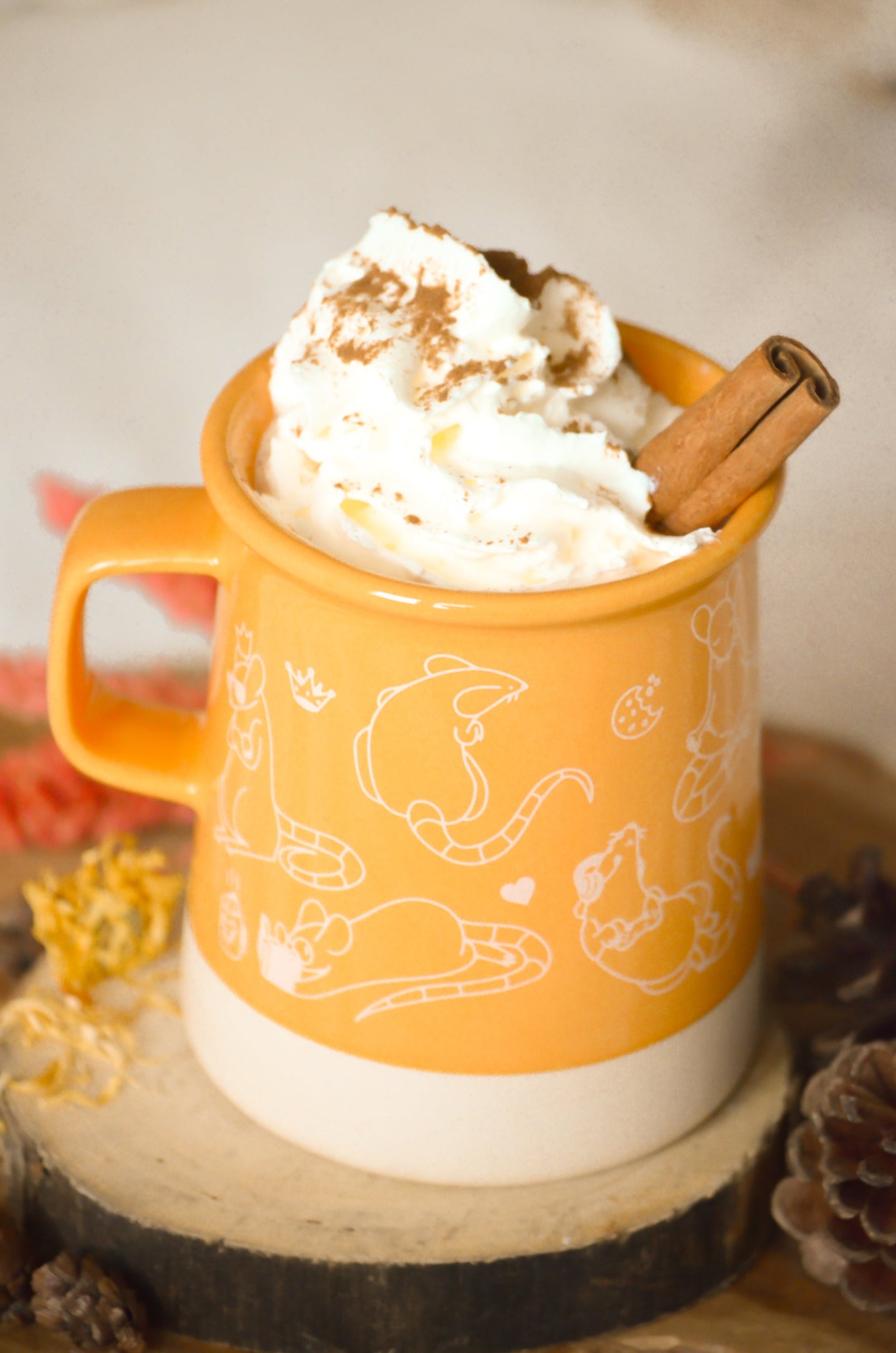 - Marquage en transfert sérigraphique "RATUS" tout le tour de la tasse. Illustrations des rats par Skyder34.